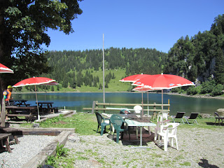 After our adventure race, a bunch of us hiked down to a gorgeous lake, which, being in Switzerland, naturally had a cafe by its shores.